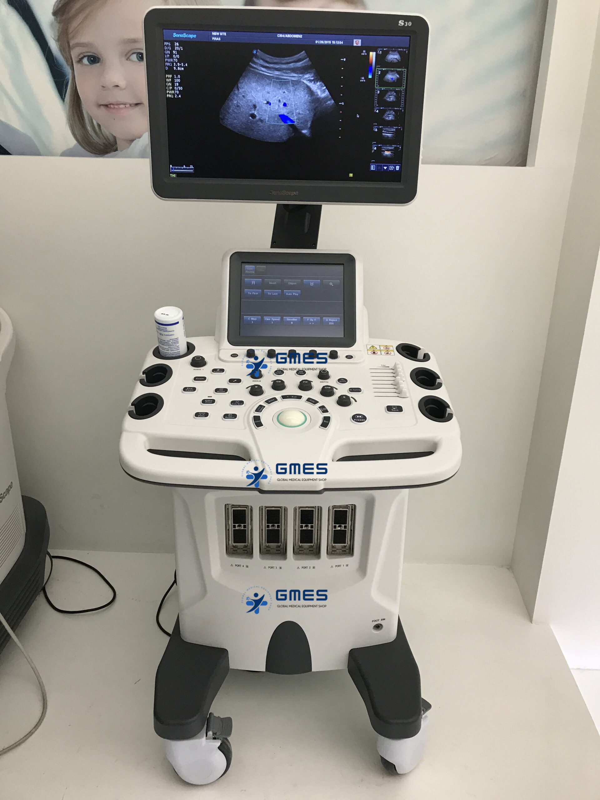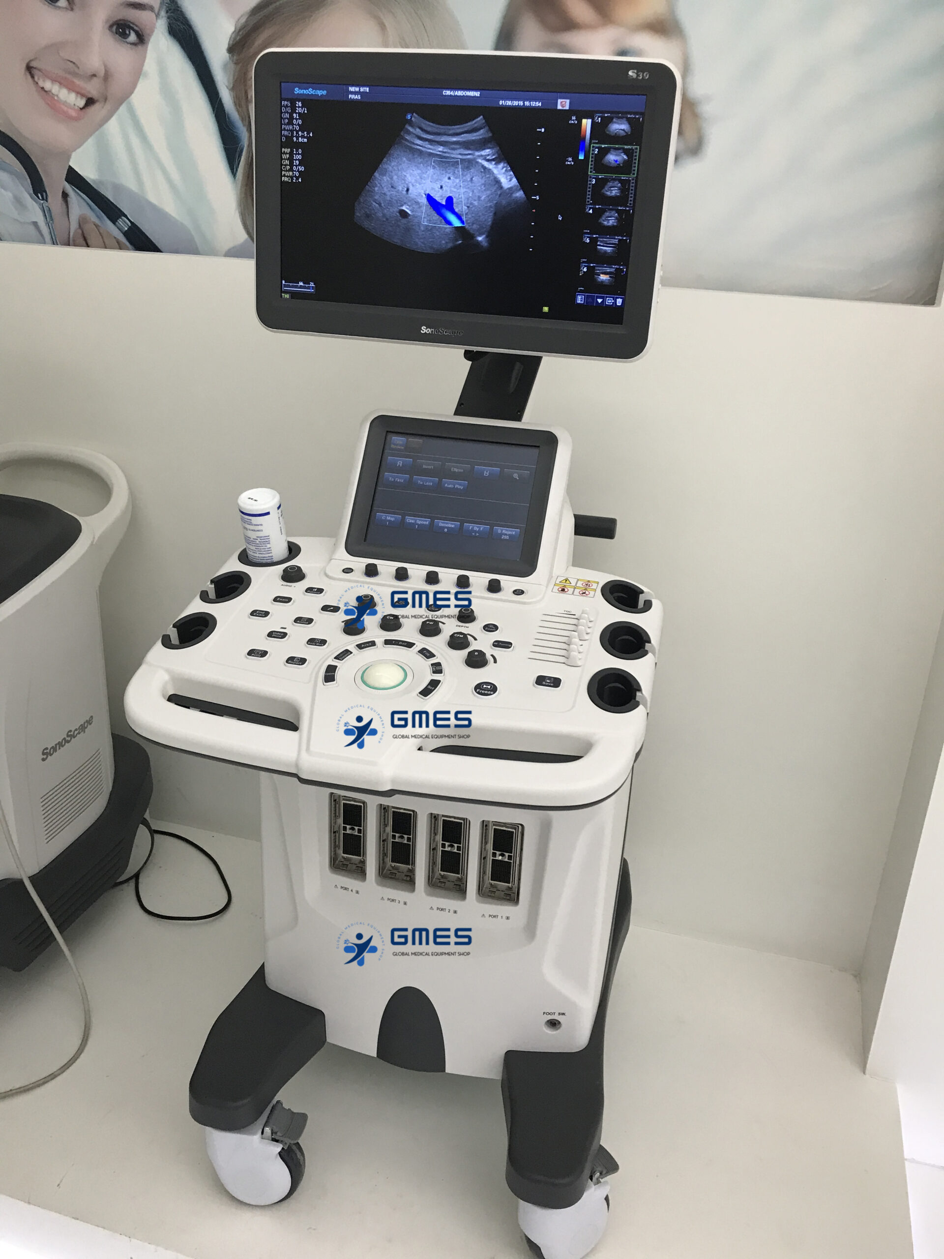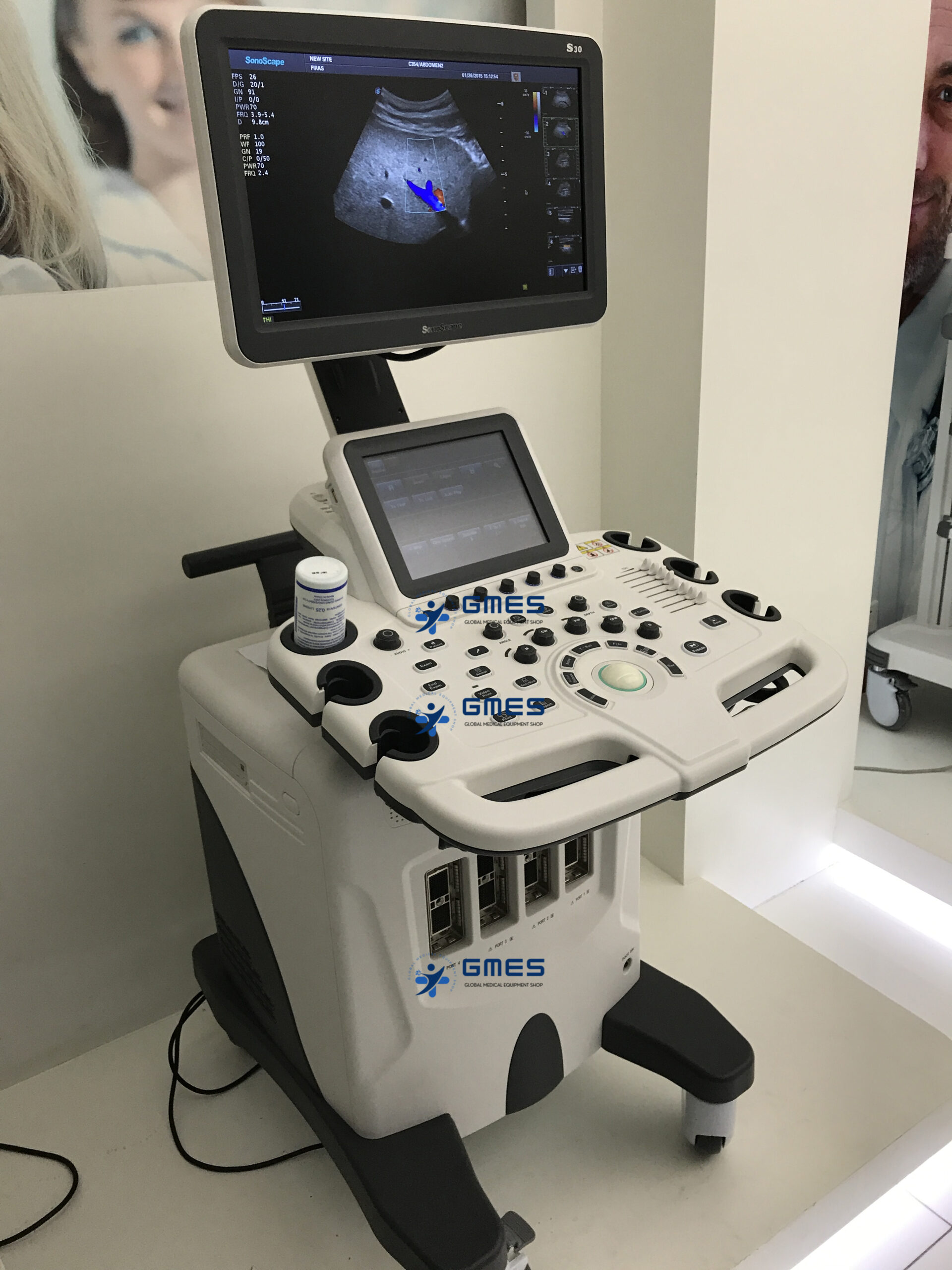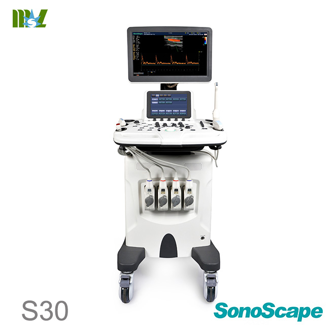 Colour Doppler Ultrasound System Color doppler trolley system with 18.5" monitor and 4 transducer sockets. 64 phys. channels, 8.5 imaging levels, compatible to HD probes, flexible monitor arm, height adjustable control panel. The S30 is built as a complete full-body ultrasound machine that has more features than any other in its class, and even can satisfy the most demanding clinical requirements, significantly expanding the value of ultrasound.